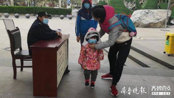 31日,济南泉城公园大门口,执勤人员从前几天的七八人减少到两人,游客基本随到随进不用再排长队。据了解,这是因为济南各大公园统一实行简易入园程序,只要快速测体温和出示身份证、绿码即可入内,不用扫描证件和登记了。这大大方便了市民游园,游客们在美丽的春色里尽情享受。