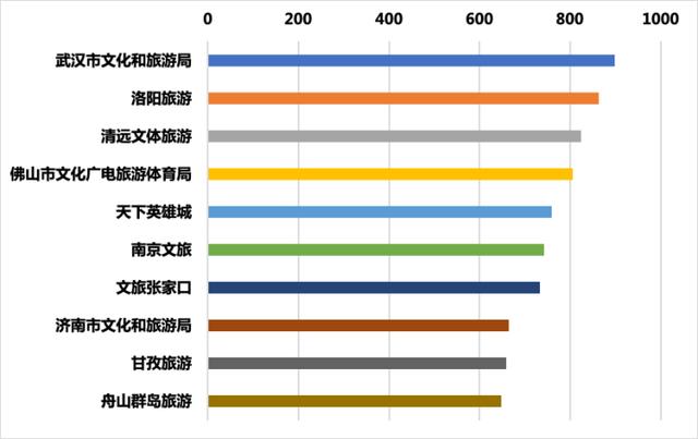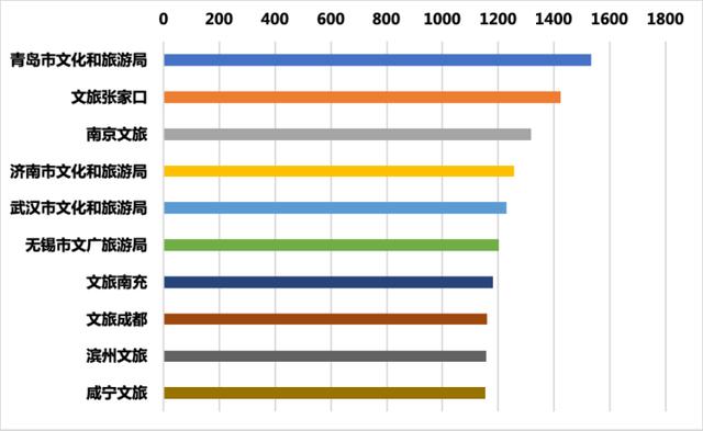 从2020年6月全国各地级文旅部门的新浪微博传播力指数得分情况来看,排在TOP10的是:青岛市文化和旅游局、文旅张家口、南京文旅、济南市文化和旅游局、武汉市文化和旅游局、无锡市文广旅游局、文旅南充、文旅成都、滨州文旅、咸宁文旅。