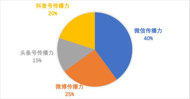 全国地级文旅新媒体综合传播力指数的评价维度由微信传播力、微博传播力、头条号传播力和抖音号传播力四个指标构成,权重分别为40%、25%、15%、20%。