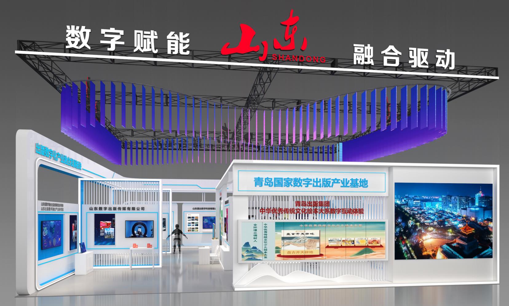 在14号馆设置的山东数字出版展区,以“数字赋能融合驱动”为主题,展览面积225平方米,组织我省18家数字出版企业参展,其中9家来自青岛国家数字出版产业基地,集中展示山东数字创意创新成果。